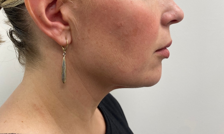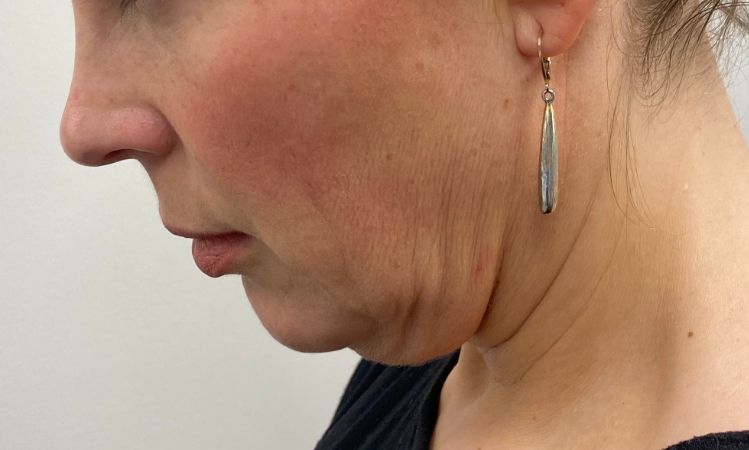 This 51 year-old lady with a good complexion underwent a combined deep plane facelift and deep neck reduction to rejuvenate the lower face and neck as well as future-proof the face against ageing-related changes. The shadow of the submandibular gland can be seen in the left oblique pre-operative view and was reduced in the neck lift through a submental (under the chin) incision. Outcome at 18 months.